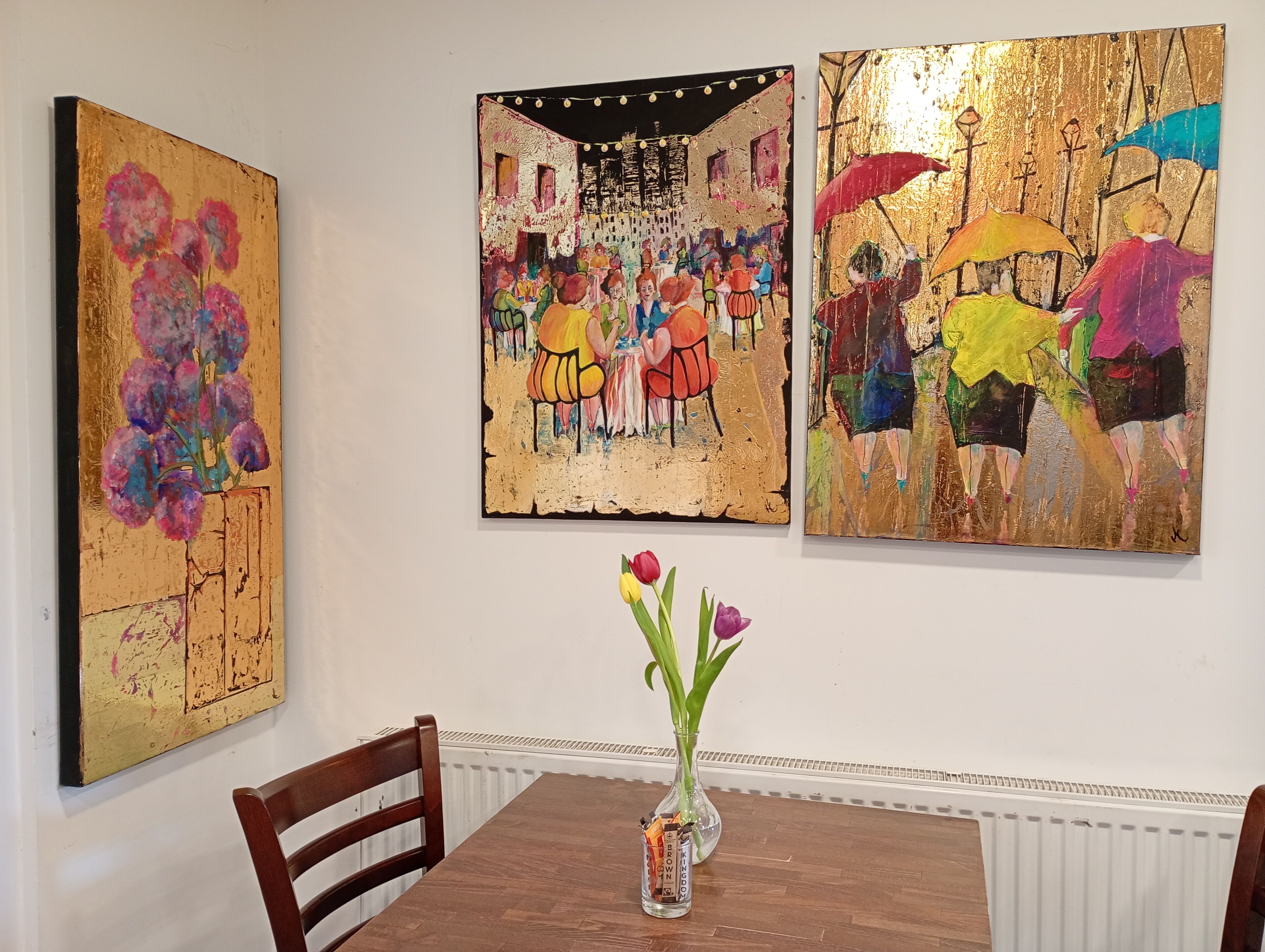 The artwork by local artists on the walls at the Methodist church cafe, The Ark, here in Marlow, UK.